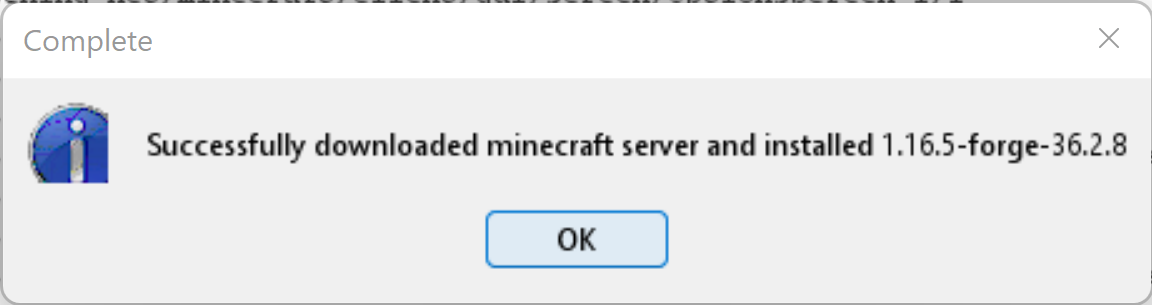 After selecting the "Install server" option and the directory where we want to install Forge, click on the "Ok" button to start the installation. This process can take a few seconds while all the files are downloaded.
